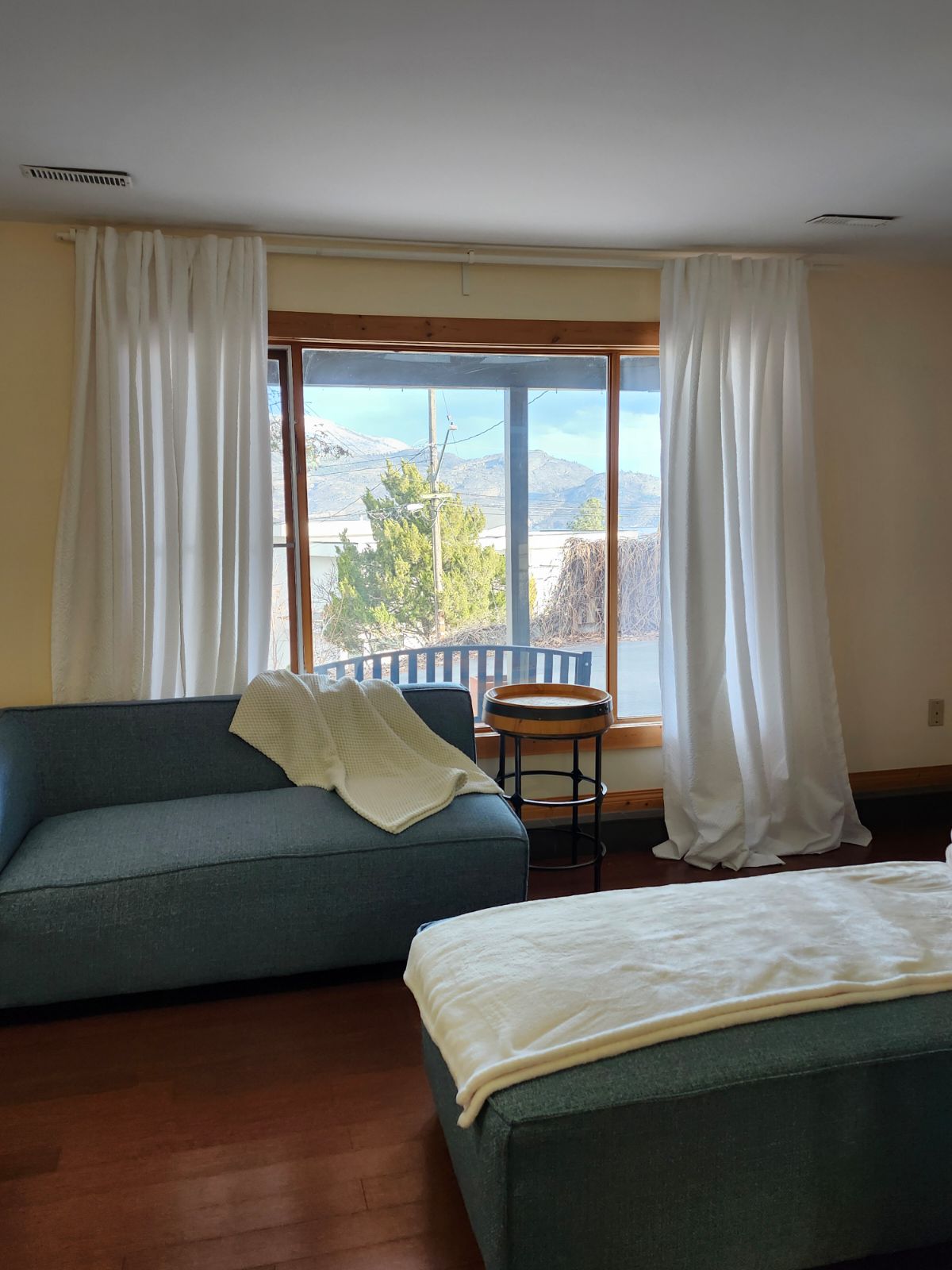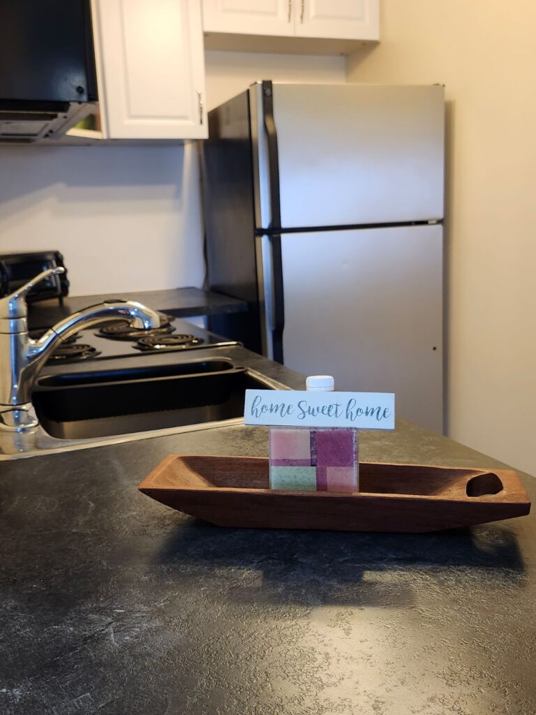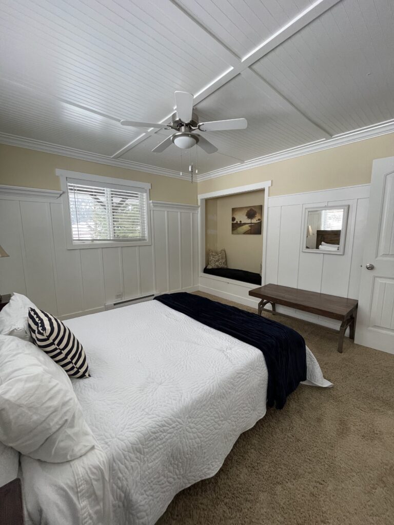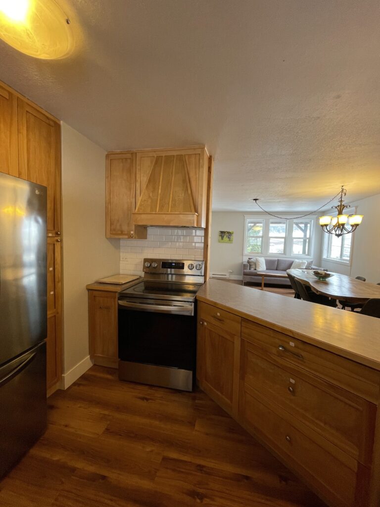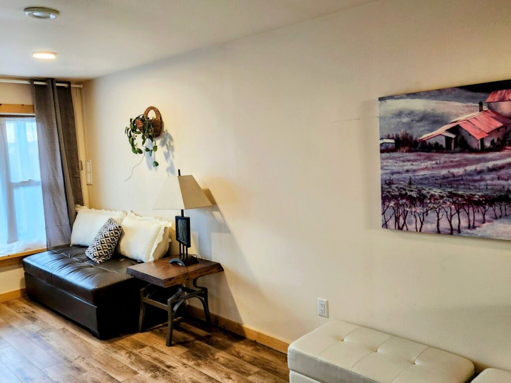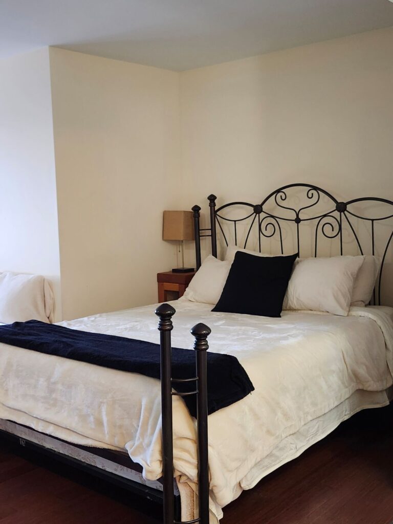 This cozy suite is perfect for a solo traveler or couple who love to cook in the full, well-equipped kitchen. High-Speed WiFi and on-site parking are available.